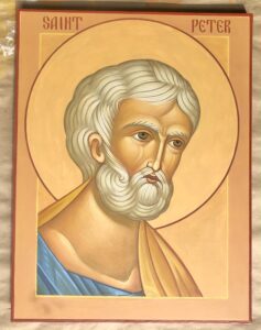 A challenge in this icon is identifying the subtle underlying organization of the hair and repeating the rhythmic parallel groupings with finely painted calligraphic lines. More challenging is illuminating the youthful face with softly blended transparent passages of tone, reaching full opacity in the brightest areas. Each brushstroke will be accompanied by the prayer “Lord Jesus Christ, Son of God, have mercy on me a sinner.”